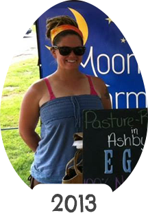 Megan earned her keep, working and learning alongside her veteran farmer every day, from sun up to sundown. Her second year working for Aidan, he began letting her do her own farmer's markets, under her own business name! Moonlight Farm was hatched in 2013!